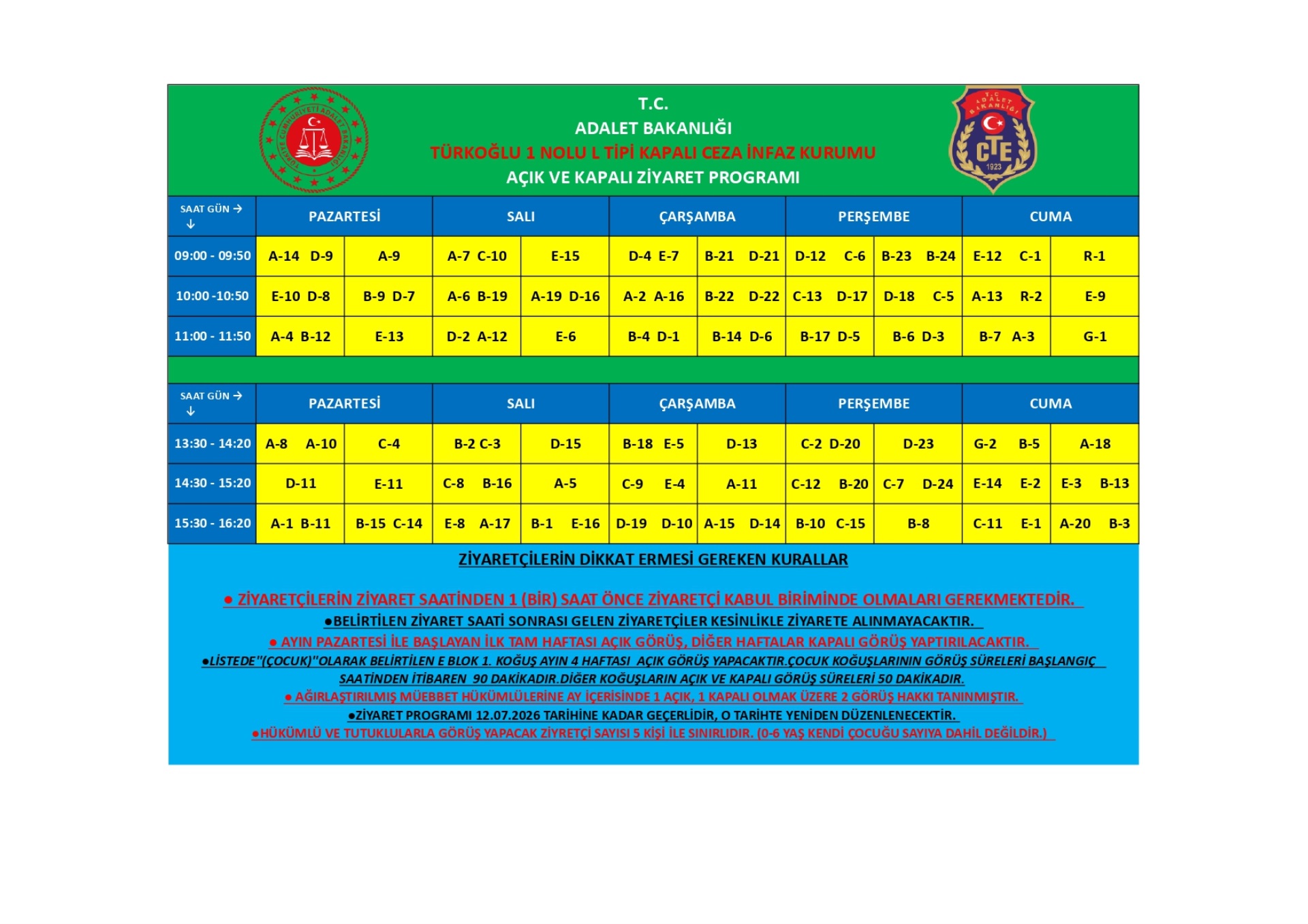 - 15 HaziranTÜRKOĞLU 1 NOLU L TİPİ KAPALI CEZA İNFAZ KURUMUTürkoğlu 1 Nolu L Tipi Kapalı Ceza İnfaz Kurumu Görüntülü Görüşme İşlemlerinin Yapılması Hakkında